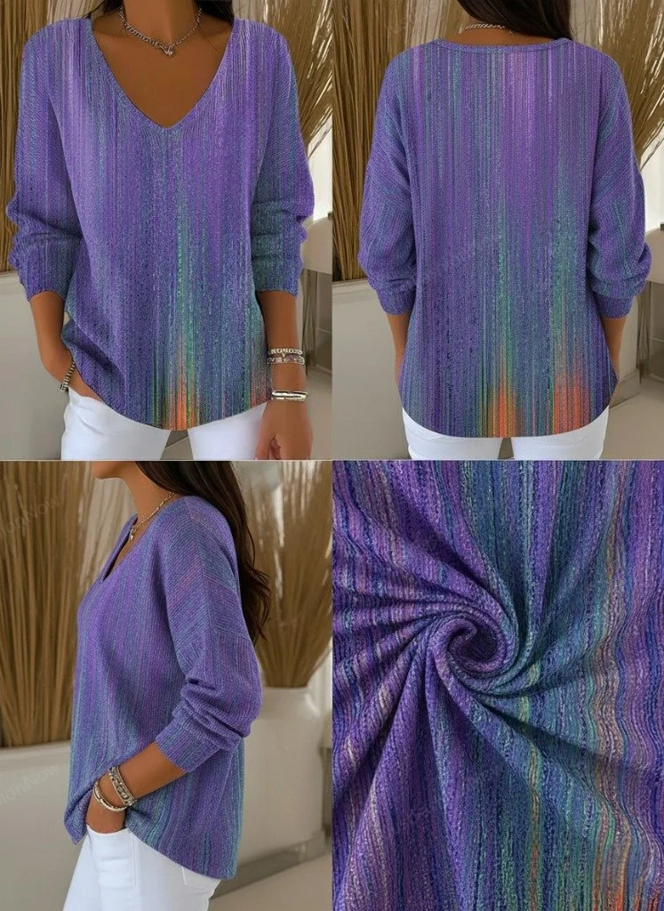 Women Abstract Long Sleeve Tee T-shirt V Neck Printing Casual Spring/Fall Top