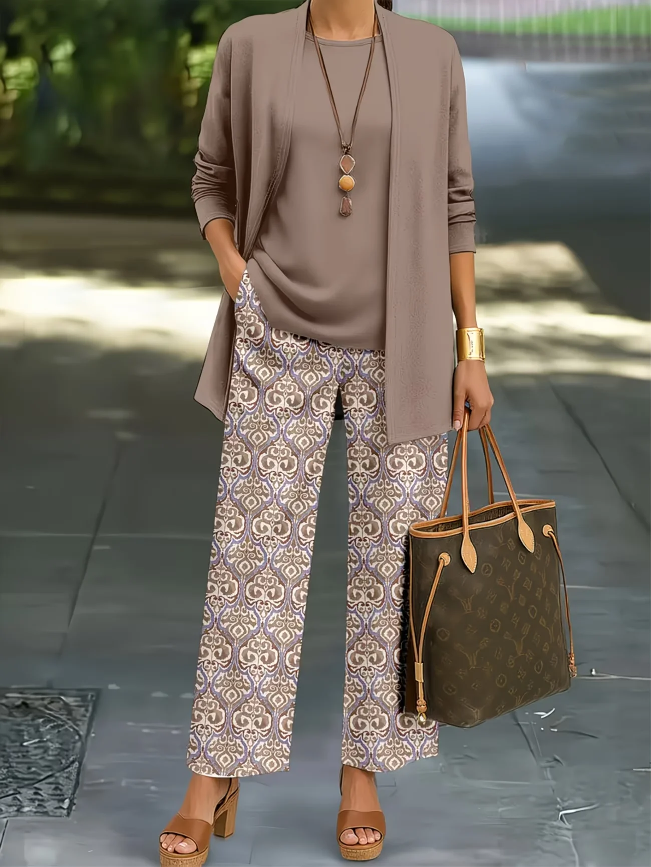 Women Abstract Printing Matching Outfit Daily Long Sleeve Casual Spring/Fall Multi-Piece Set Matching Set