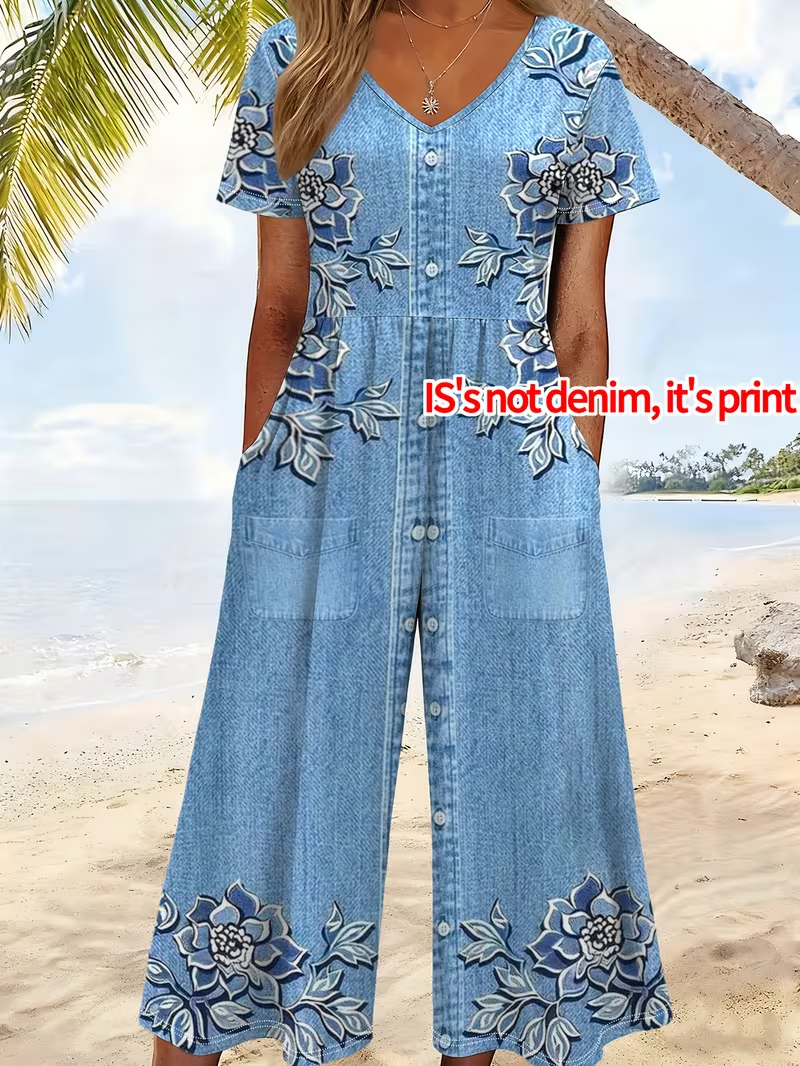 Pattern:Floral,Faux Denim Print Graphic