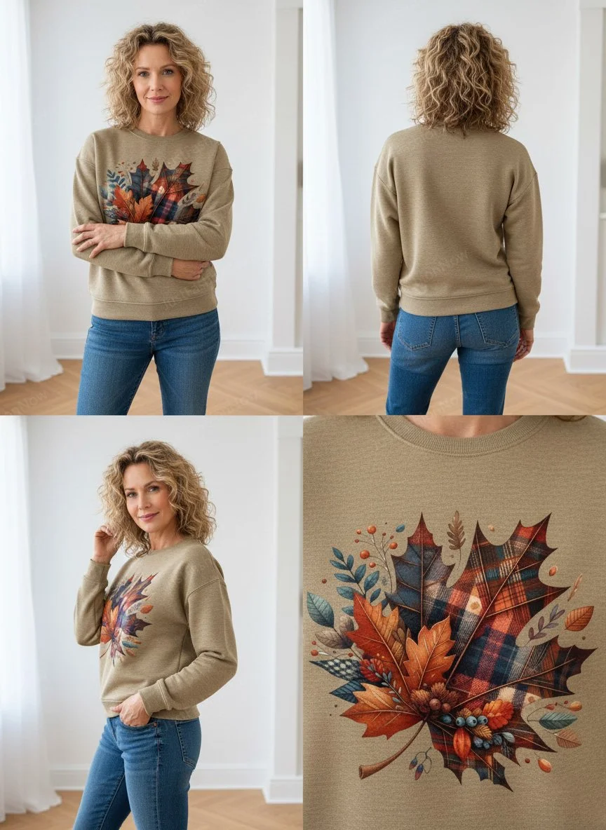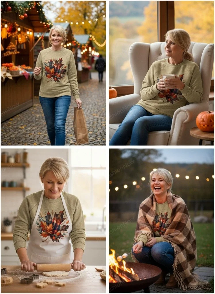 Women Maple Leaf Crew Neck Printing Casual Spring/Fall Long Sleeve Sweatshirt