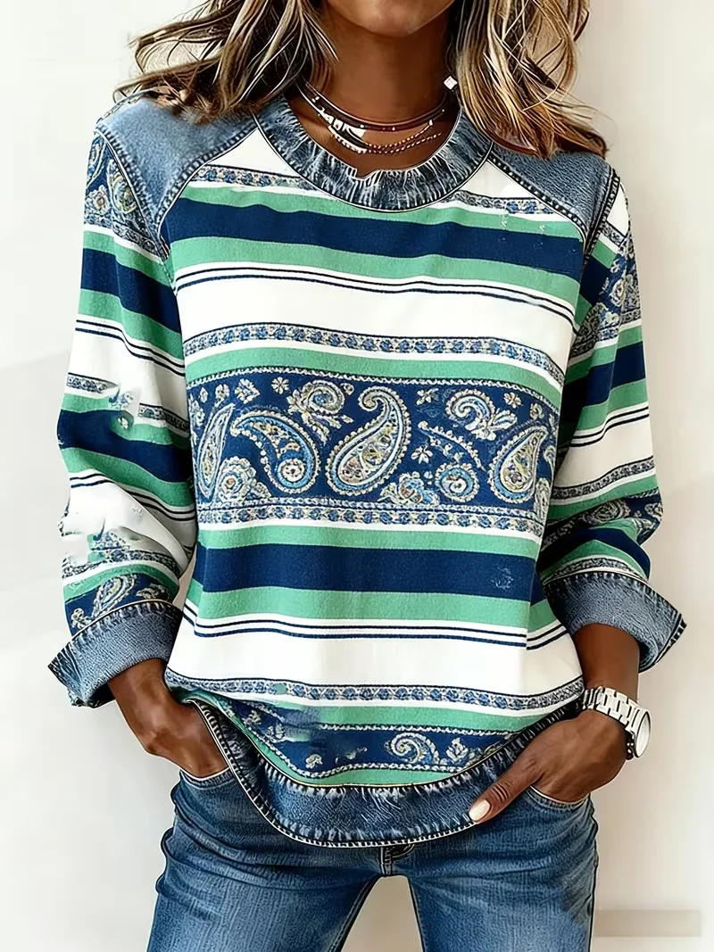 Women Paisley Crew Neck Printing Vintage Spring/Fall Long Sleeve Sweatshirt