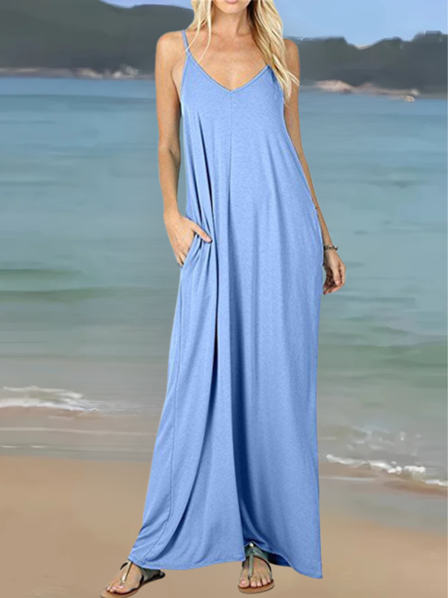 Women Plain Gallus V Neck Split Joint Dress Daily Casual Maxi Slip Dress A-Line Summer Dress