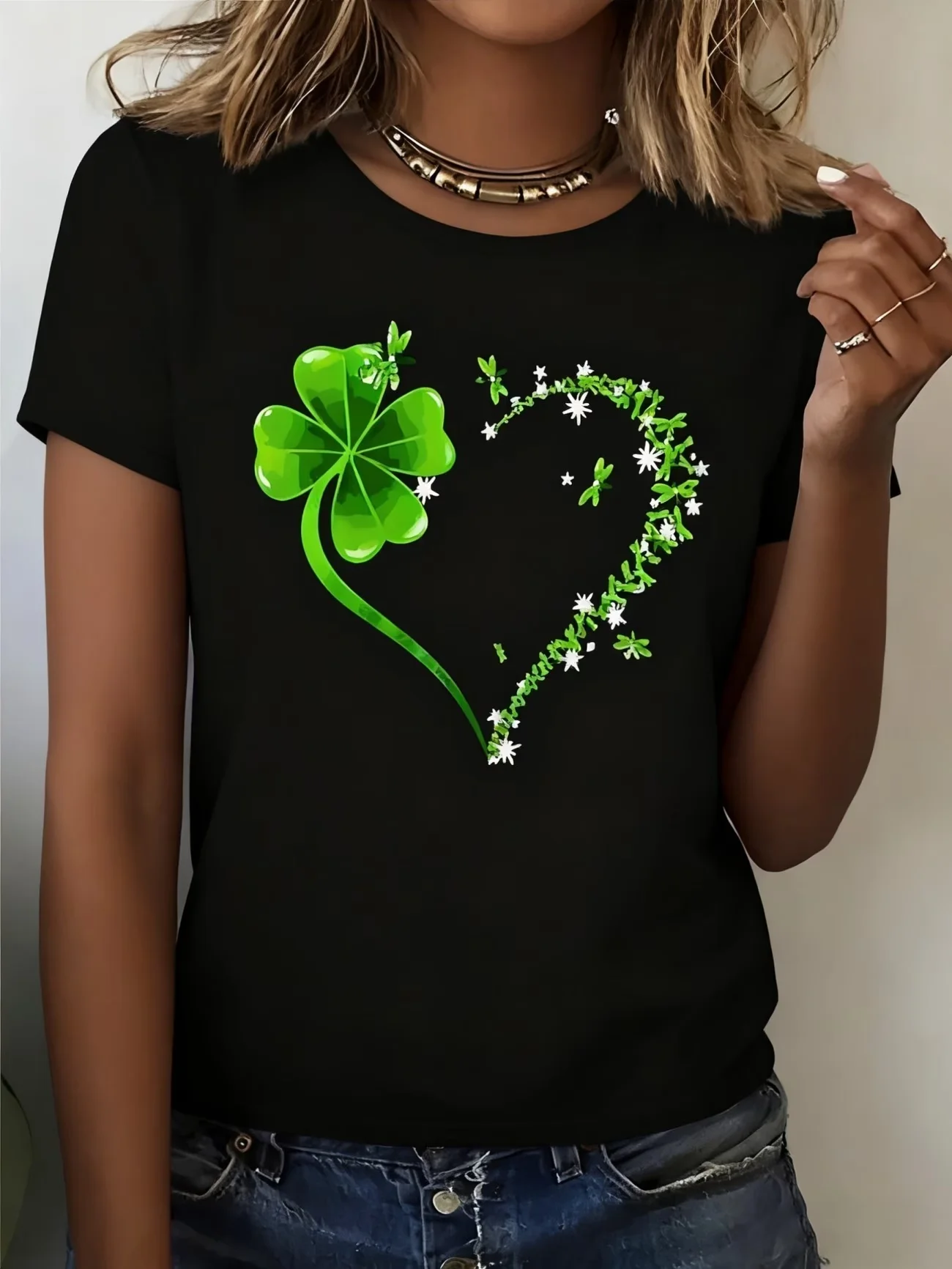 Women Shamrock Short Sleeve Tee T-shirt Crew Neck Printing Casual Graphic Tee Summer Top