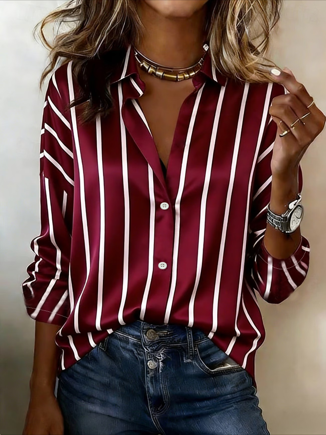 Women Striped Shawl Collar Long Sleeve Shirt Casual Daily Spring/Fall Top